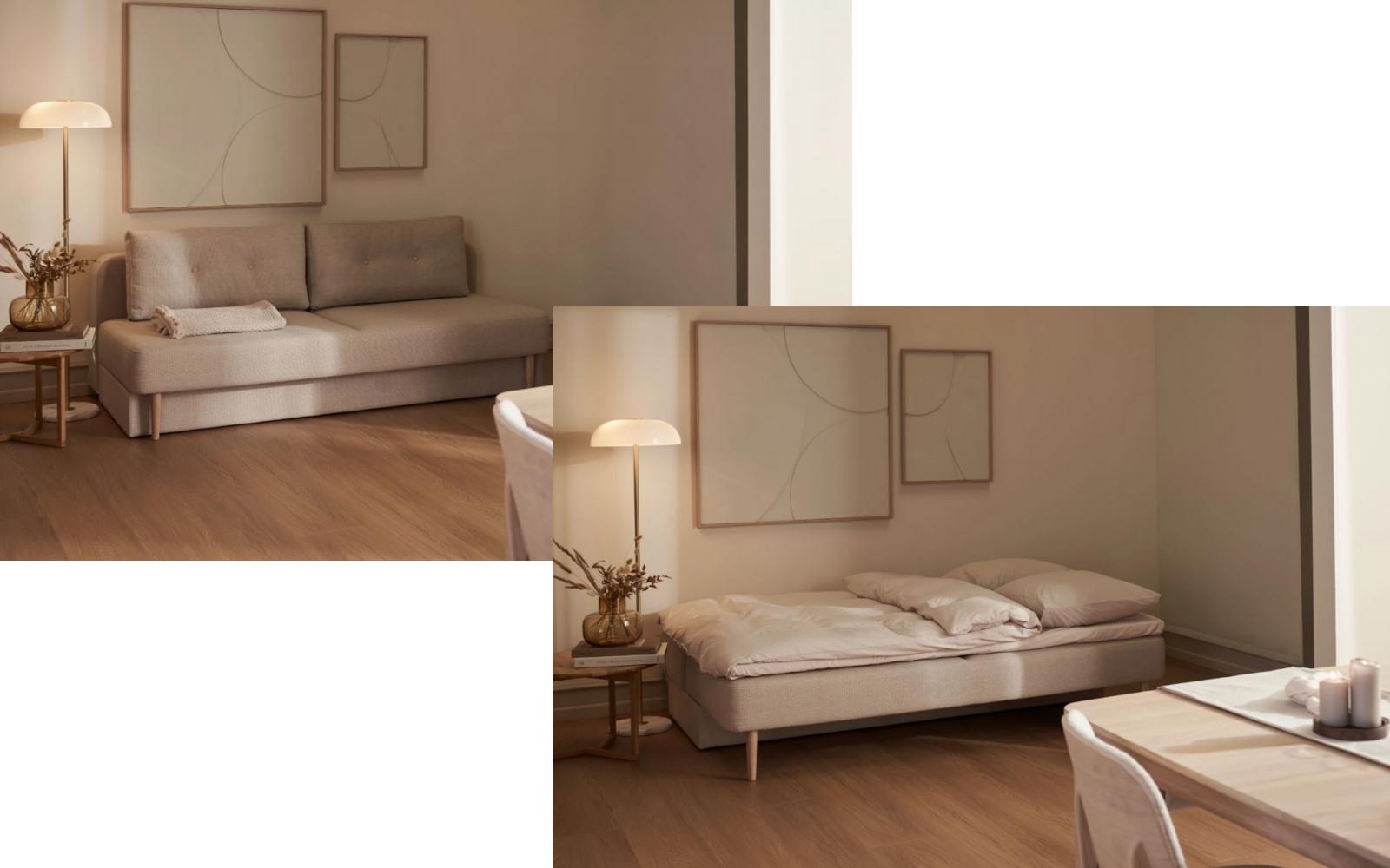 Du kan blandt andet se vores populære Alberte sovesofa som er perfekt til et hjem der har brug for en ekstra soveplads, eller et lille hjem der ønsker både en soveplads og en sofa. Alberte sovesofaen har øje for funktinalitet men også stilfulde detaljer der den tidsløs og perfekt ind til enhver indretning. Den er nemt trækkes ud som en sovesofa ved blot at løfte sædet op og trække ud. Derefter skal ryggen lægges ned for at få den fulde sengeoplevelse🛏️